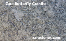 Zara Butterfly granite jumbo slab has arguably the most variable of green secondary supporting colors with minor differences that appear in poligons remeniscent of a monarch butterfly's wings. Secondary colors dashed randomly throughout adds to the butterfly effect making it particularly attractive.
