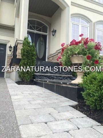 Kota Black exterior stone steps can be used in combination with poured concrete, interlocking or natural stone pavers and a popular choice for designers, builders and landscaping contractors.